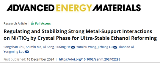 近日,昆明理工大学何素芳/罗永明教授团队在国际权威期刊Advanced Energy Materials(IF2024=24.4)上以题为“Regulating and Stabilizing Strong Metal-Support Interactions on Ni/TiO2by Crystal Phase for Ultra-Stable Ethanol Reforming”发表乙醇重整制氢领域最新研究成果。博士研究生朱松山为论文第一作者,何素芳教授(分析测试研究中心)、陆继长副教授(环境科学与工程学院)和罗永明教授(化学工程学院)为该文共同通讯作者,昆明理工大学为第一署名单位和唯一通讯单位。